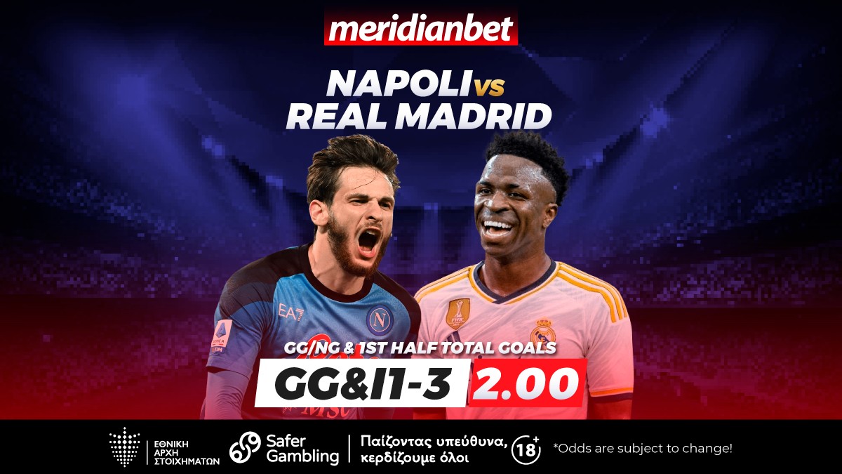 Για περισσότερες αποδόσεις/επιλογές σχετικά με τον αγώνα της Νάπολι με την Ρεάλ Μαδρίτης ή για οτιδήποτε άλλο θελήσετε, μπορείτε να επισκεφθείτε την ιστοσελίδα της Meridianbet και Meridian Sports.