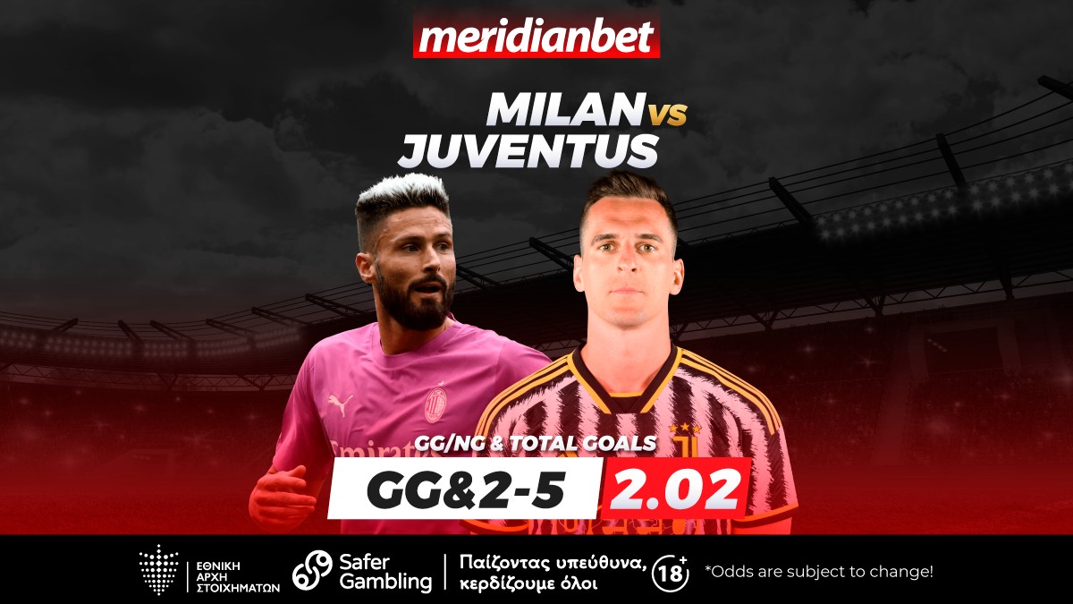 ** ** Μίλαν-Γιουβέντους σε ένα δυνατό παιχνίδι με τεράστιο ενδιαφέρον που θα είναι λεπτό προς λεπτό στο online betting και με τις καλύτερες αποδόσεις για στοίχημα μόνο στη Meridianbet!