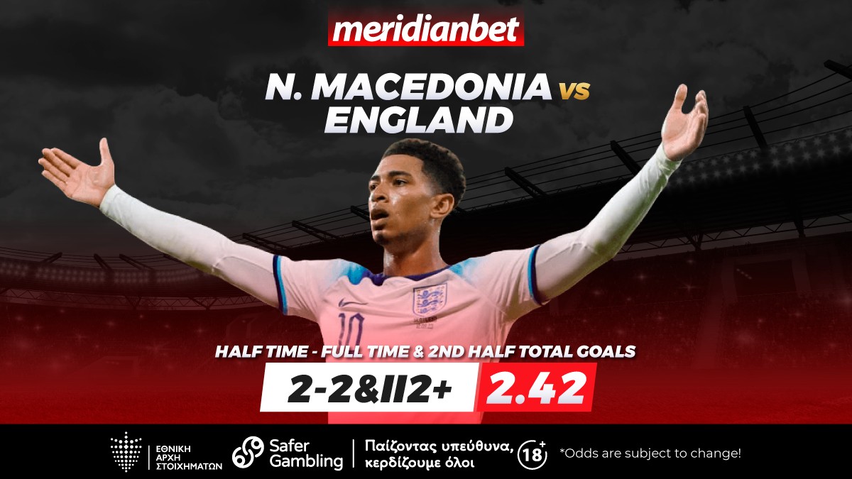 ** ** Βόρειος Μακεδονία-Αγγλία σε ένα δυνατό παιχνίδι με τεράστιο ενδιαφέρον που θα είναι λεπτό προς λεπτό στο online betting και με τις καλύτερες αποδόσεις για στοίχημα μόνο στη Meridianbet!