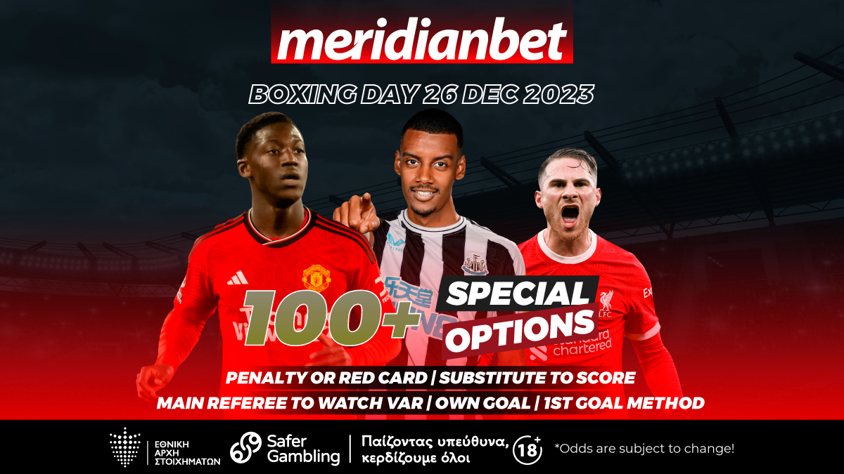Η Boxing Day πλησιάζει και μαζί έρχονται και χιλιάδες επιλογές μέσω της Meridianbet και τις ειδικές μας προσφορές. Σας προσφέρουμε πάνω από 1000 επιλογές σε κάθε ματς και πάνω από 100 επιλογές σε special bets.