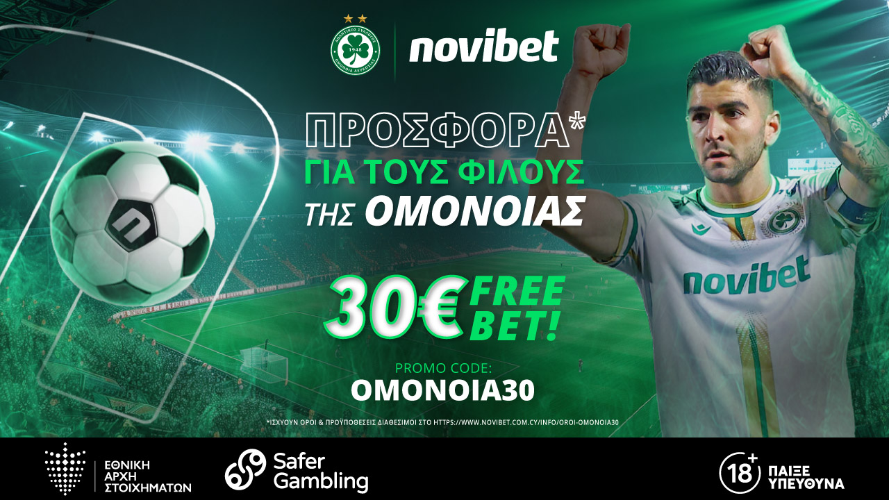 Προσφορά* για τους φίλους της Ομόνοιας με 30€ FREE BET*