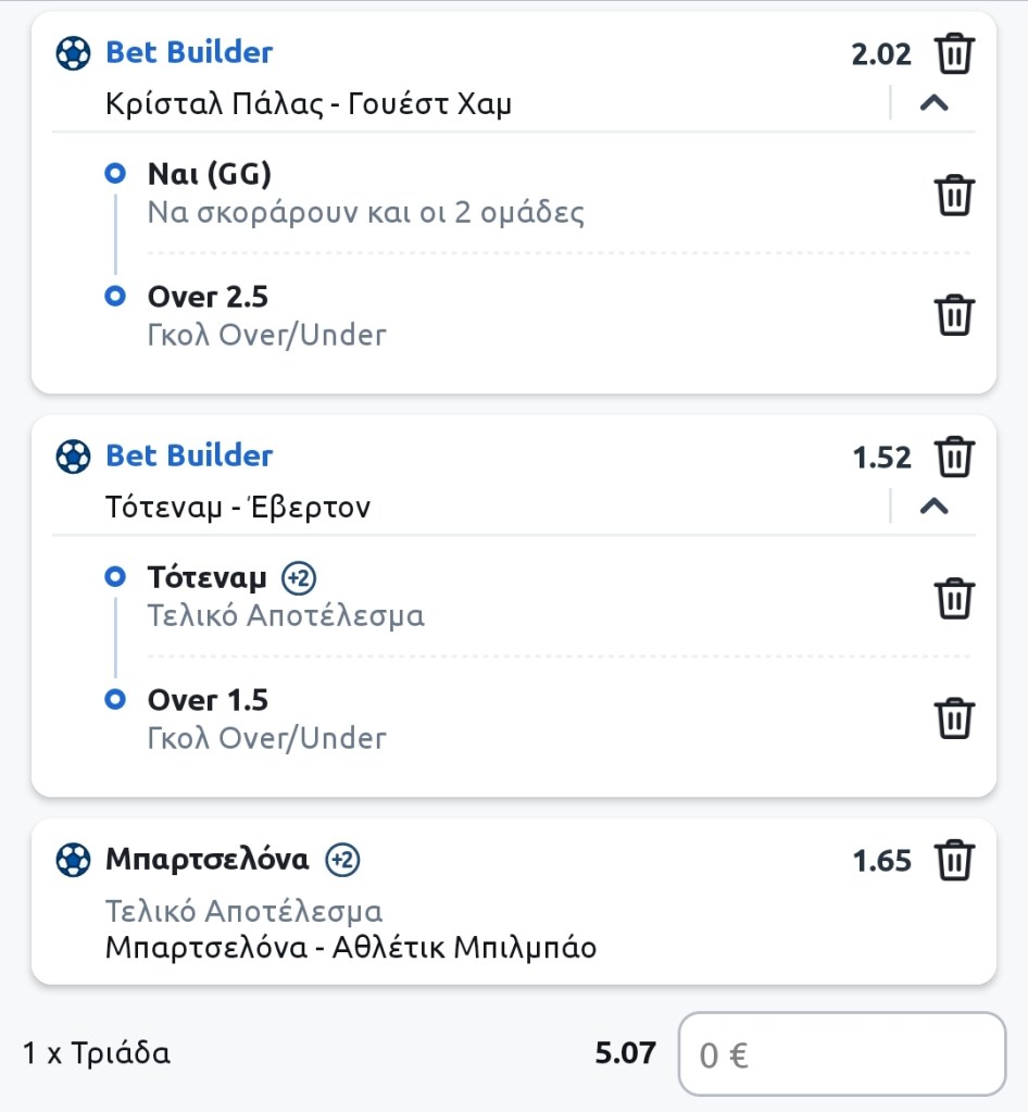 Αρχή με τριάδα συνολικής απόδοσης 5.00+ από τον tipster μας, Γιώργο Προδρόμου: