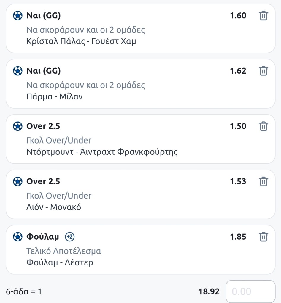 Εξάδα συνολικής απόδοσης 18.90+ από τον tipster μας, Ανδρέα Κυπριανού: